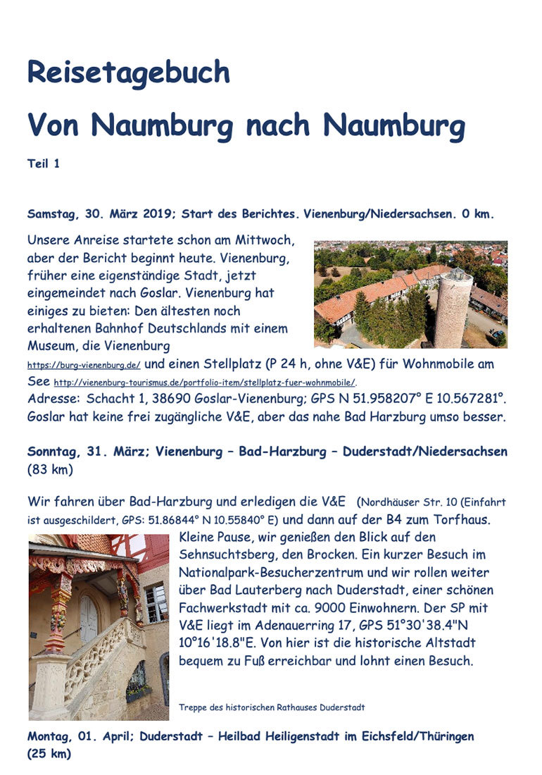 Touren durch Deutschland werden nicht nur wegen Corona immer beliebter. Auch diejenigen, die schon lange unterwegs sind und viel gesehen haben, entdecken immer noch wunderschöne Ecken, die sie noch nicht gesehen haben. So auch Peter Broszio, der die Anfahrt zu unserer letzten JHV 2019 nach Naumburg genutzt hat, weitere spannende Orte zu besuchen. Das Reisetagebuch, stellt Peter allen Clubmitgliedern zum Herunterladen und Nachfahren zur Verfügung.